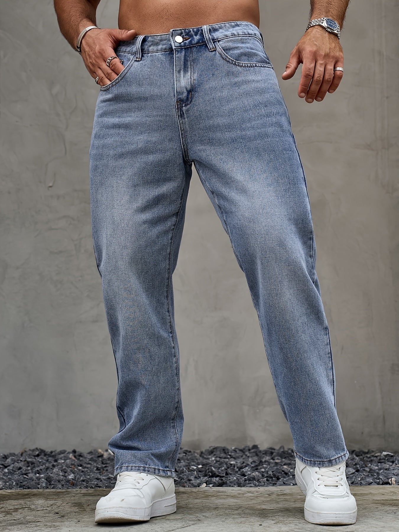 Forbedre garderoben din med disse allsidige denim buksene som kombinerer klassisk stil med moderne komfort.