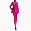 Oppdag et skreddersydd dress-sett som gir et raffinert utseende til formelle og profesjonelle garderober. Den strukturerte blazeren har en notched lapel-krage og knappestolpe, mens de matchende rette buksene fullfører det koordinerte antrekket. Designet med en ensartet vevd overflate, gir dette settet en ryddig og sammenhengende stil.