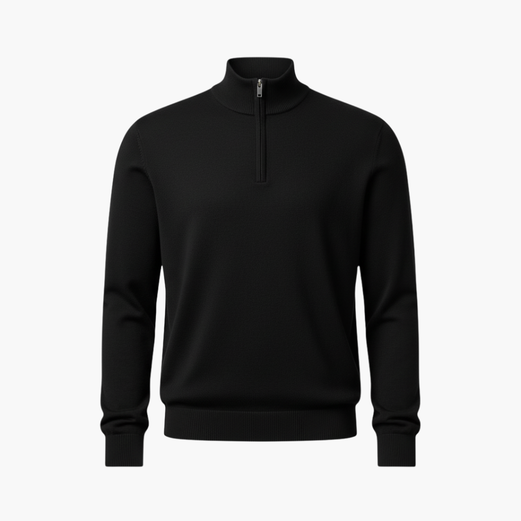 Herre Pullover med Quarter Zip og Ribbet Kant
