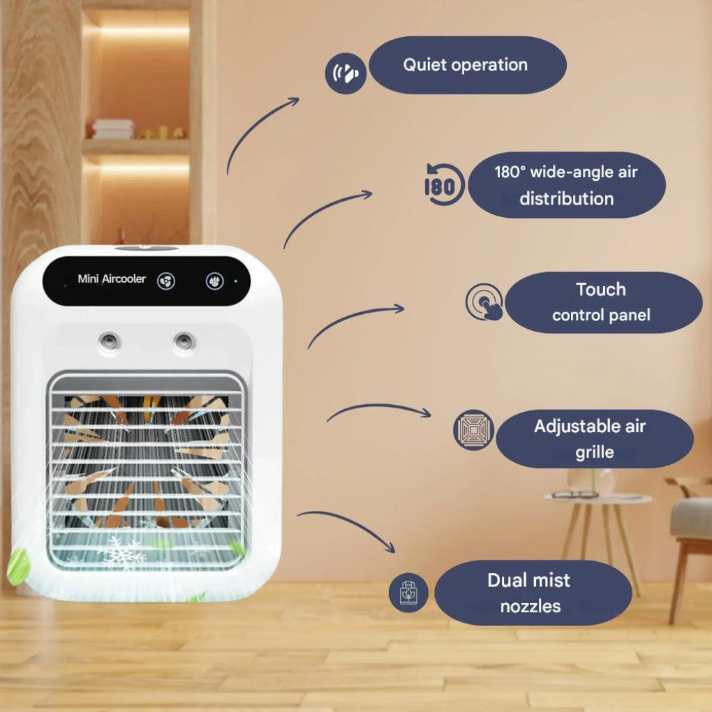Denne sommer luftkjøleren og diffuseren kombinerer kjølende luftstrøm med en integrert duftfunksjon for å bidra til å skape en behagelig innendørs atmosfære. Med justerbar luftstrøm og duftdispersjon passer den til stuer, soverom, kontorer eller andre innendørs rom. Det kompakte designet gjør den til et praktisk supplement for varme dager.