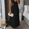 Omfavn tidløs eleganse med denne ermeløse kjolen, som har en raffinert V-hals og et subtilt tiltalende design med åpen rygg. Perfekt for sommerarrangementer, ferier eller kveldsturer, kombinerer denne kjolen komfort med chic stil.