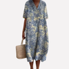 En luftig blomstrete sommerkjole for kvinner, som kombinerer en flatterende fasong med et feminint print — perfekt for varme dager, uformelle utflukter eller avslappende helger.