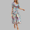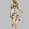 Kvinners Casual V-Hals Midi Kjole kombinerer uanstrengt stil med hverdagskomfort. Dens allsidige design gjør den til et basisplagg for din sommergarderobe, passende for ulike anledninger og enkel å style opp eller ned.