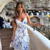 Denne rufflede blomsterkjolen utstråler sjarm og lekenhet med sitt livlige blomstertrykk og feminine volanger, og tilbyr den perfekte balansen mellom eleganse og moro for enhver solfylt dag eller kveldsutflukt.