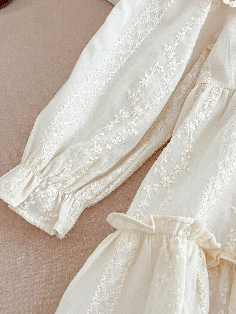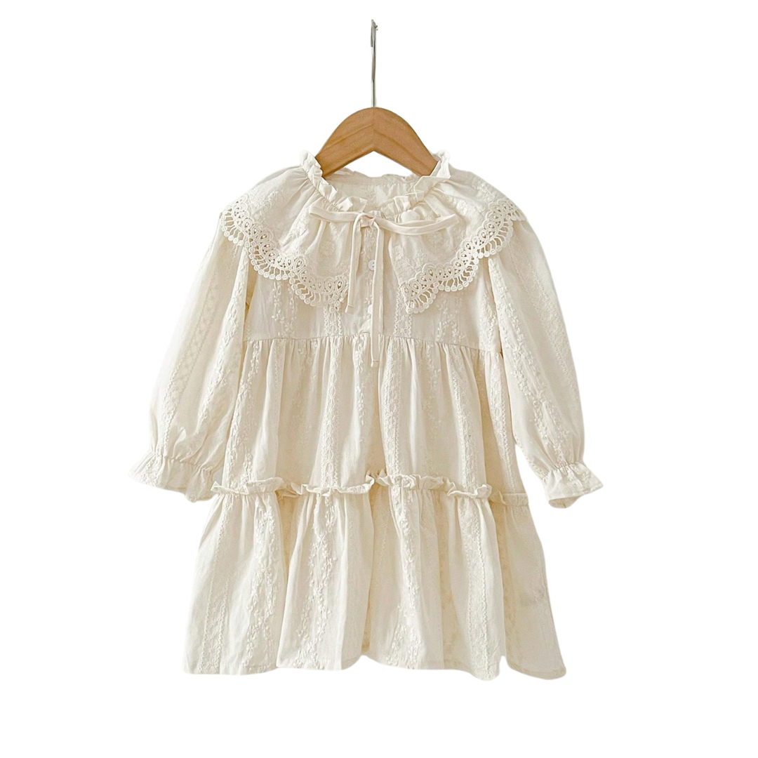 Barnekjole med blondekrage og lange ermer – Vintage sjarme for små trendsettere