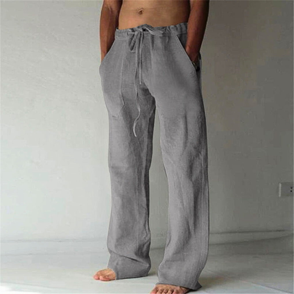 Slapp av i uanstrengt stil med disse menns brede lounge-buksene, designet for maksimal komfort hjemme, på farten eller under uformelle utflukter. Med høy midje og justerbar trekksnor samt pustende stoff, er disse buksene ideelle for avslapning, reise eller hverdagsbruk.
