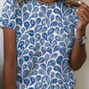 Kvinners Blå Trykk T-Skjorte Rund Hals & Kort Ermer