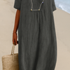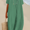 Avslappet Strandkjole med V-hals og Korte Ermer