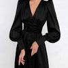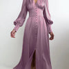 Satin Maxikjolen er et strålende og raffinert valg for de som søker et tidløst, elegant utseende. Laget av luksuriøs satin, har denne kjolen en flatterende V-hals, elegante lanterneermer og en flytende silhuett som utstråler ren klasse.