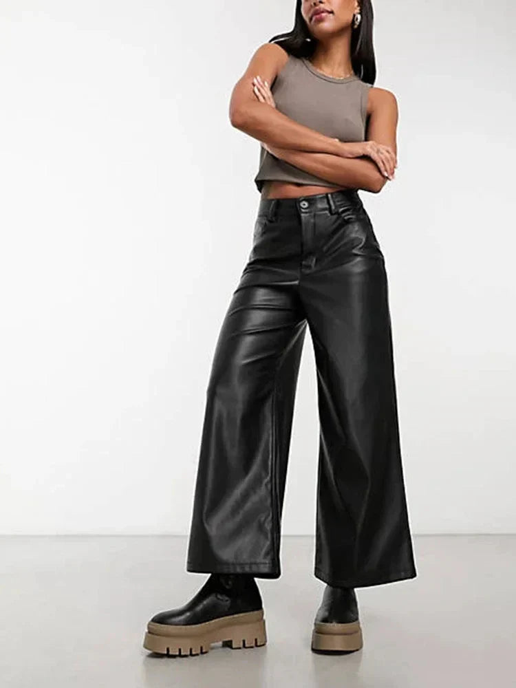 SleekEdge Høyt Liv Lærbukser for Kvinner